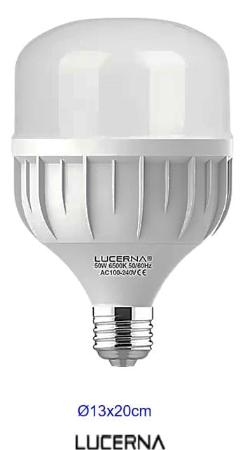 Bombillo LED tipo Domo de alta potencia (40W), diseñado para iluminación de áreas amplias o elevadas que requieren gran cantidad de luz. Su forma de domo permite una distribución de luz más focalizada y eficiente.