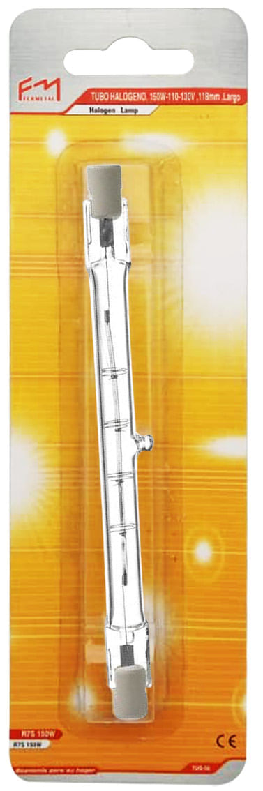 Bombilla halógena lineal de 150W y formato estándar de 118mm. Es una opción común para la iluminación de reflectores de tamaño mediano y luminarias de pared.
