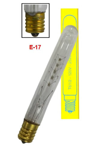 Se trata de una bombilla incandescente de forma Tubular y acabado Claro (transparente). Sus especificaciones clave son una potencia de 25 Vatios, un voltaje de operación de 120 Voltios y una base de rosca de tamaño intermedio E17, conocida también como "rosca de candelabro" o "intermediate base". Este tipo de bombilla (usualmente con bulbo T7 o T8) se emplea frecuentemente en electrodomésticos como hornos, microondas, neveras o en luminarias decorativas donde se requiere una fuente de luz compacta, proporcionando una luz cálida.