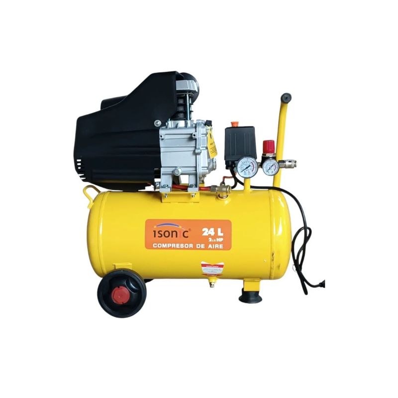 ISONIC: COMPRESOR DE AIRE USO DOMESTICO 24 LITROS 2 1/2 HP (6 GAL.), 110V~60Hz 80P (40mm), 8 BAR (116 PSI). PISTON 1*42MM TAMAÑO 240*420MM COLOR AMARILLO Este compresor de aire es ideal para trabajos básicos en el hogar.