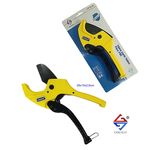 La tijera GEDESEO está diseñada para cortes precisos y limpios en tubos de PVC, PPR y otros plásticos de hasta 64 mm (2 1/2") de diámetro. Fabricada en acero reforzado con mango ergonómico, ofrece alta resistencia y comodidad durante el uso. Su mecanismo de trinquete facilita el corte progresivo sin esfuerzo excesivo, ideal para instalaciones hidráulicas, sanitarias y trabajos de plomería profesional. Robusta, segura y eficiente para tareas exigentes